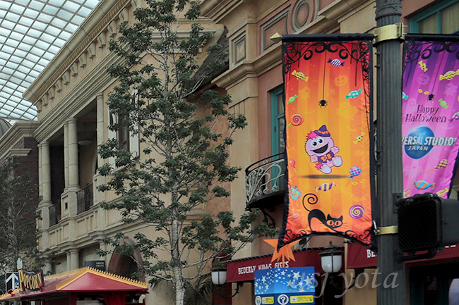 またパーク内のタペストリーも同様にハロウィーン仕様になっていました。