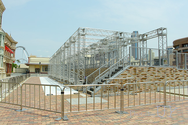 この舞台上に鉄骨が組まれ、新しいイベントの準備が始まっています。