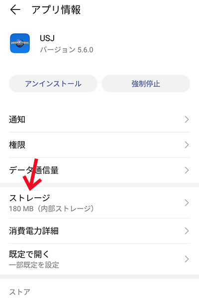 USJアプりのキャッシュを削除