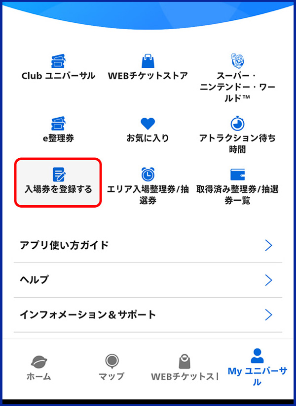 これで、スーパーニンテンドーワールドの入場整理券を取得できるようになります。