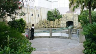 ジュラシックパークで観られる、恐竜親子の散歩がダイナソー・ウォーク。以前はゲストが居並ぶ間を抜けるように散歩していたのですが、現在はスペースを区切って開催されているようです。そのおかげで、恐竜の大きさを写真で表現できるようになりました。ゲス...