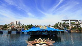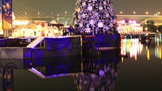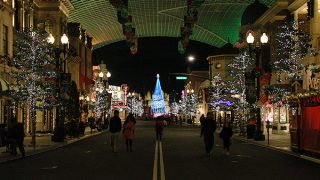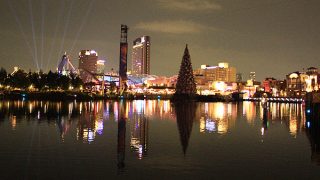 冬場のUSJは風が強いことが多いので、チャンスが少ないだろうと予想できるのですが、無風のタイミングでクリスマスツリーが点灯したら、水面に写るツリーとパークの景色が、とっても綺麗だろうと思うんです。上の写真では、水面がわずかに波打っていますが...