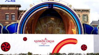ユニバーサル・レインボー・サーカスの舞台の囲いがとれ、その姿を見ることができるようになりました。基本的には10周年のショーが行われたものと同じですが、ペインティングがサーカス風になり、グローブの左側に2本のポールが設置されています。テレビコ...