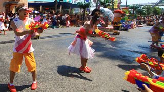 では、3回に渡って書いたウォーターサプライズパーティーのクライマックス、スプラッシュタイムの様子をお伝えします。まず最初は、いわゆる水鉄砲で、ゲストとキャストの水のかけあいです。余談ですが、スプラッシュタイムが始まると、キャラクターは大きな...