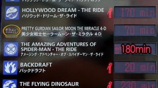 さすが春休み。200分を超える待ち時間のアトラクションがたくさんありました