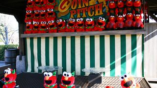 アトラクション、ジョーズRのあるアミティ・ビレッジにゲームコーナーがありまして、その一つに「コイン・ピッチ」というゲームがあります。ガラスのお皿の上にコインを投げ、そのコインが1枚でも皿に乗ったら景品がもらえるというもの。料金は、コイン10...