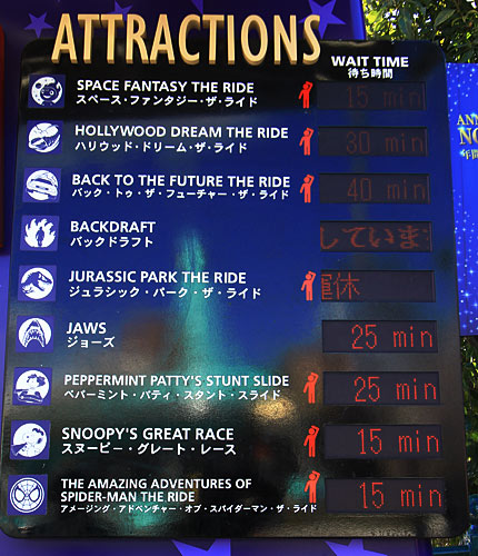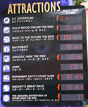 待ち時間については、途中でシステムトラブル等でライドが止まってしまうと、その分長くなってしまうので、あくまで目安としてとらえてくださいね。