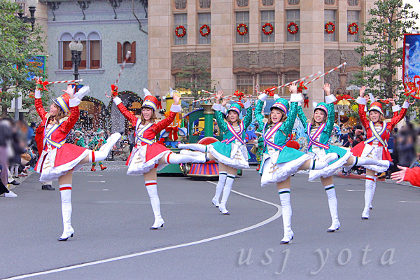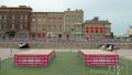 右からライドが進んできて、モニュメントの前を通過する瞬間です。