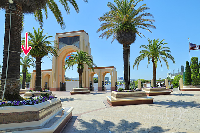 チケットブースとともに、工事が行われているのがエントランスにたくさん植えられているヤシの木。