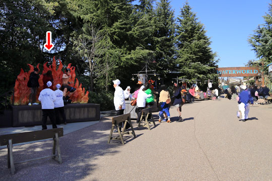 このことにより、「ワンピース・プレミアショー」の会場となるウォーターワールドのシアターまでのルートがホラーエリアとなります。