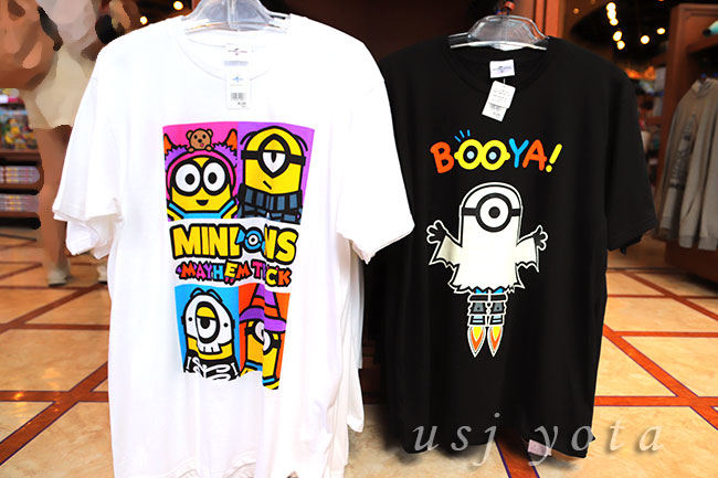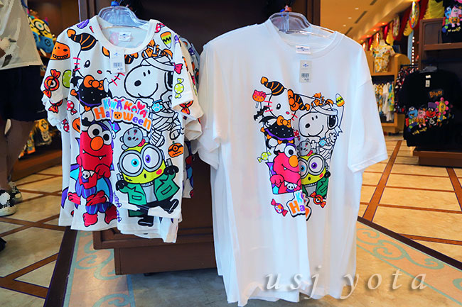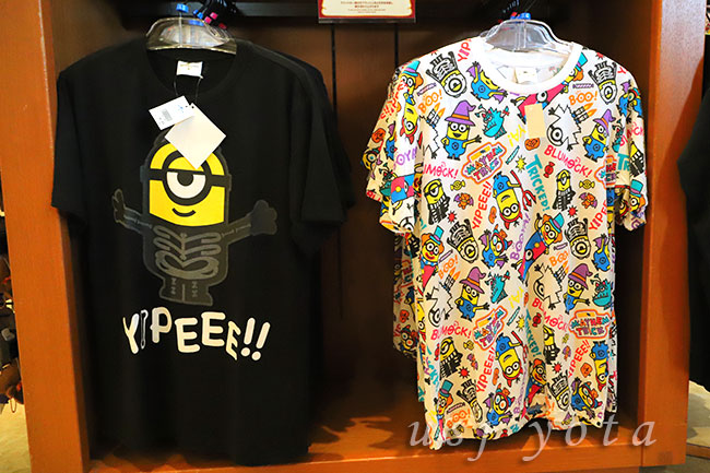 USJのキャラクターがデザインされたTシャツなどのお土産