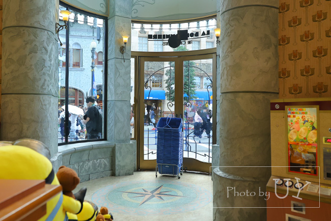 バイオハザードの整理券を取ってから、パーク内を少し歩き、シティウォークに用事があったので、一旦パークを出ようと思い、いつものように、カリフォルニア・コンフェクショナリーのお店から、ハミクマグッズを販売しているビバリーヒルズ・ギフトに抜け、入場ゲートに向かいました。