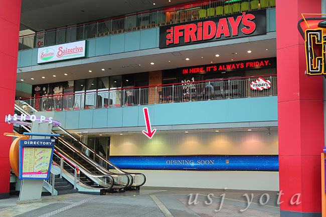 電車(JR)を使ってUSJに訪れると、ほとんどの方が通る3階部分の2店舗に『OPENING SOON』と書かれた仮囲いがされ、改装作業が行われています。