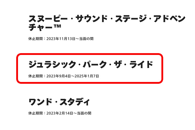 2023年9月4日~2025年1月7日の間運休していたジュラシックパークザライド。