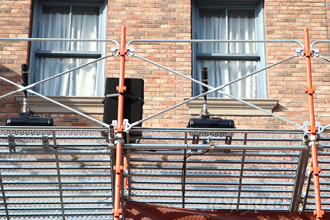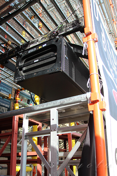 また、舞台の足場の上のほうに、黒い筒状のものがいくつか取り付けられています。
