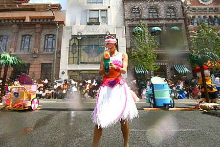 歩道の舞台寄りは観覧エリアとなっていて、舞台から見て柵の後方は通り抜けする通路となっています。