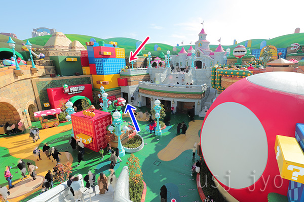 そして、もう一つは下の写真の場所、ニンテンドーワールドに入って右側にある位置です。