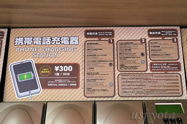 先ほど書いたような、スマホを利用する時間が長くなるニンテンドワールドの事情を反映して、なんと、18台も設置されています。