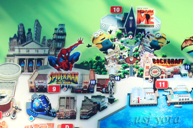 2014年にハリーポッターエリアがオープンしているので、目玉のハリポタエリアが大きく描かれています。
