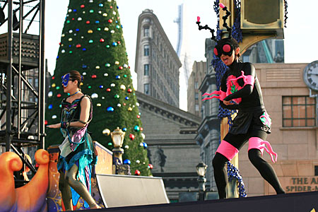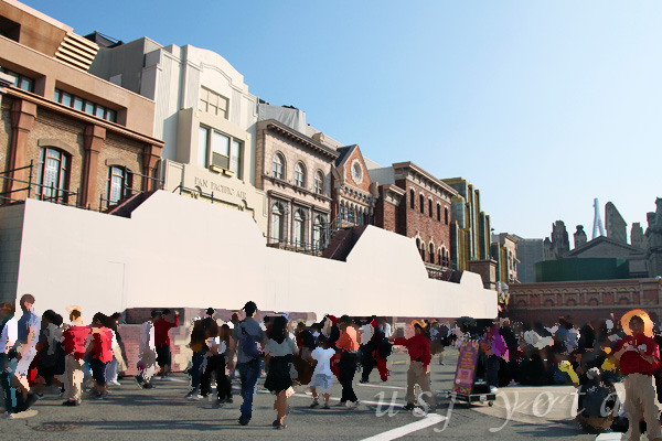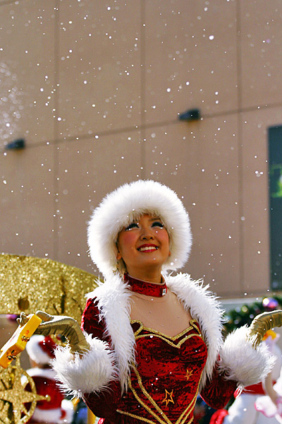 ハッピー・スノー・パーティー考4 USJ ショーとパレード 2009.12.232023.02.09 ドンキーコングカントリー入場確約券付ツアーはJTBだけ 2009年11月17日のブログには、雪の演出をリアルに感じたい天候は、曇り空のほうが良いかもしれない。と書いたんですけど、晴天も良いんですよ。 この写真を撮ったのは、逆光という条件だったため、降る雪が白く輝き、なんともいえない雰囲気をかもし出していました。 キャストさんの姿があってこその写真なんですけど、本当のクリスマスが近づいてきて、よりリアルにこのパーティーを見ることができますね。