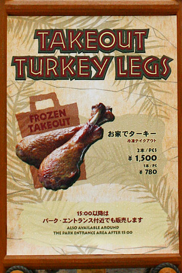 ご覧の通り、パークで人気の食べ物の一つ、ターキーレッグの