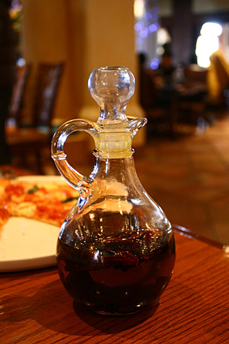 オリーブオイルに唐辛子を漬けたもので、これをピザに少したらしますと、