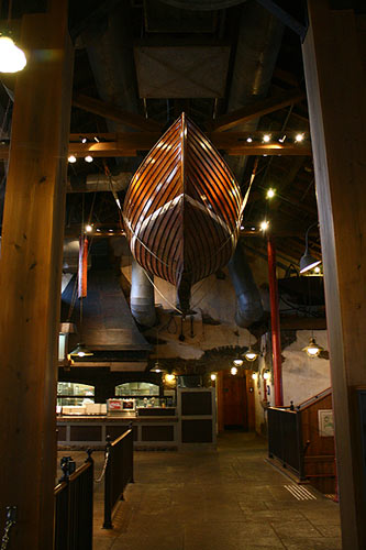 レストランに入ってすぐのところに、ボートが吊り下げられているんですね。