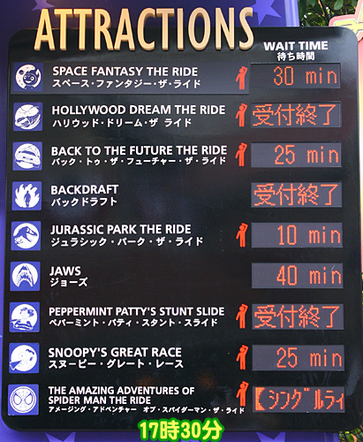 アトラクションほど、受付終了となる時間が早くなるのです。