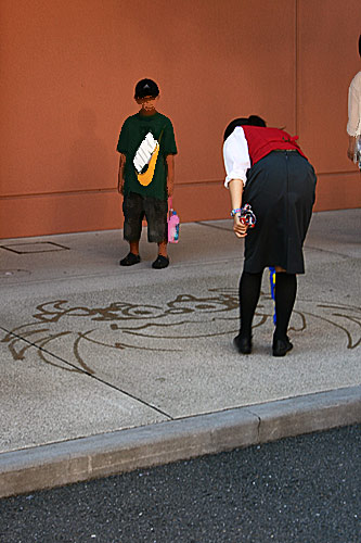 USJ 雑文パークを歩いていると、道路にこんな絵が描かれているのを