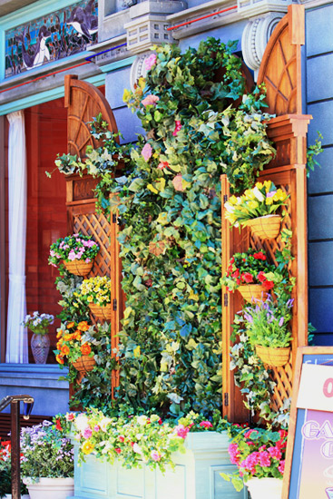 開店準備を進めているお姉さんは、花壇に水やりをはじめます。