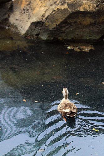 今はラグーンでのショーがないので、カルガモの親子が見られたら、