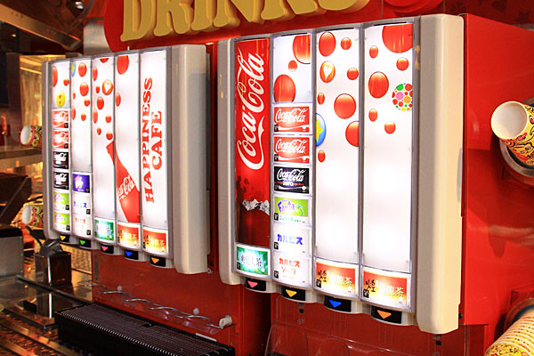 爽健美茶・ファンタメロンソーダ。コーヒー・紅茶とあと1種類程度でした。