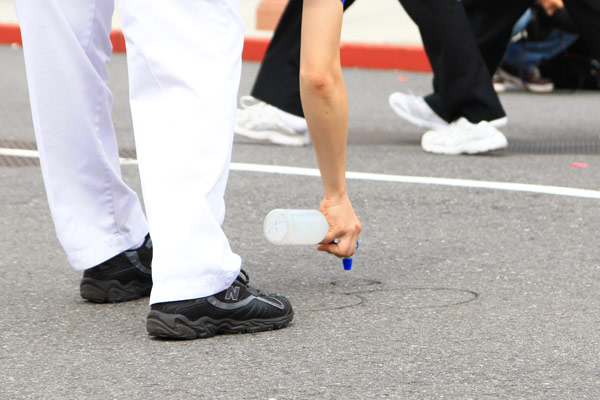 フラッシュアンドビートが始まる前、キャストが水スプレーを使って