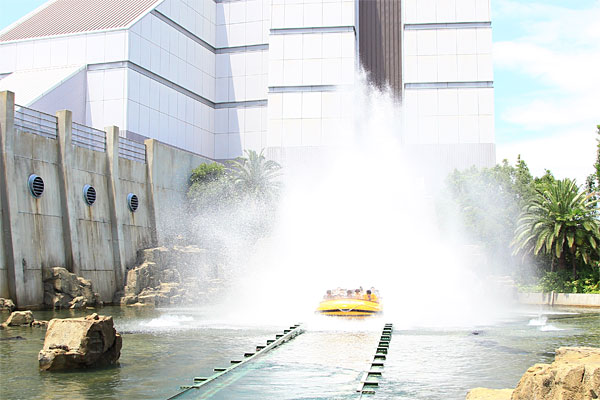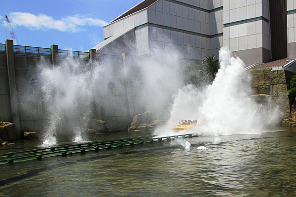 ジュラシック・パーク・ザ・ライドRでは現在、スーパーウェットタイムと称した、普段より濡れる仕掛けがされています。