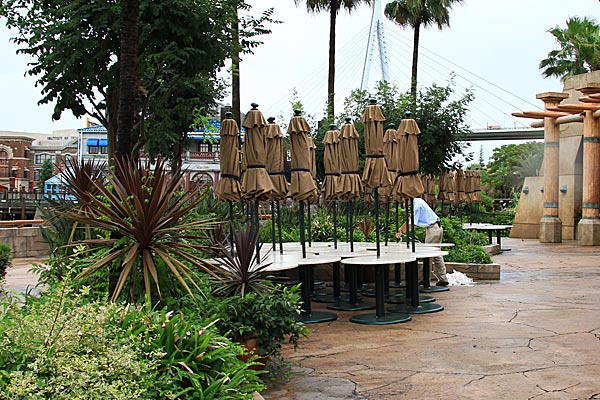 この台風の影響を避けるため、USJでも屋外のテーブルなどを
