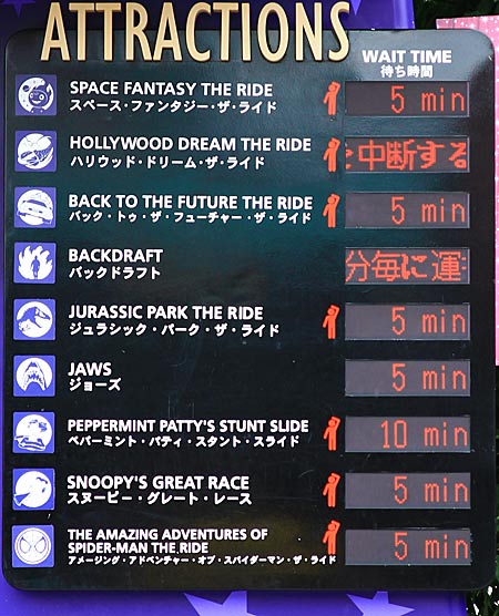 こんな天気でしたから、パークも空いていて待ち時間はこんな感じ。