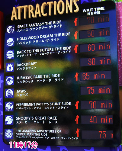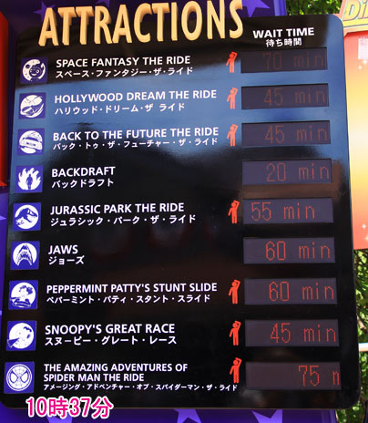 パークに着いた10時過ぎ、入場ゲートの待ち時間が5分ほどでしたから、