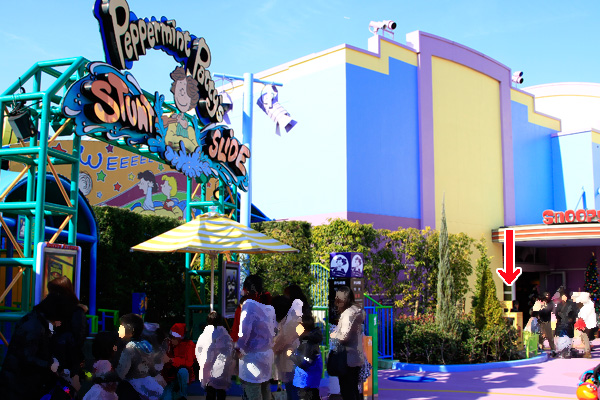 アトラクション、バックトゥザフューチャーの入り口で見ることができますよ。