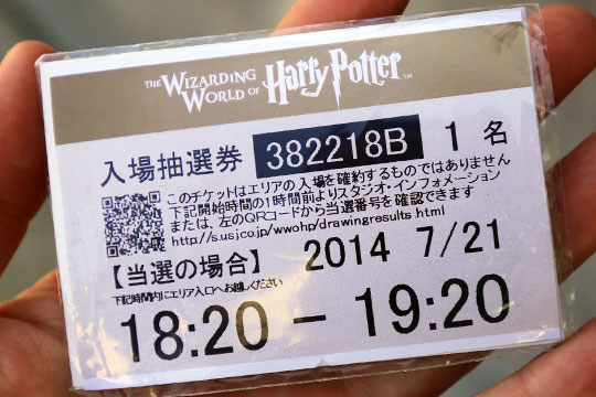 整理券でハリー・ポッターエリアに入ったことはあるものの、抽選券は見たこともない。