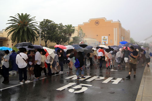 USJの最寄り駅ユニバーサルシティからUSJに歩いていくと、下の写真のような光景になっています↓