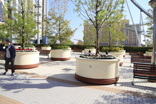 段差を椅子代わりにしたいところですが、ワタシが見たときは、段の上と下で区別されていて、段の上に座った人が段の下に足を下すことは禁止されていました。。。