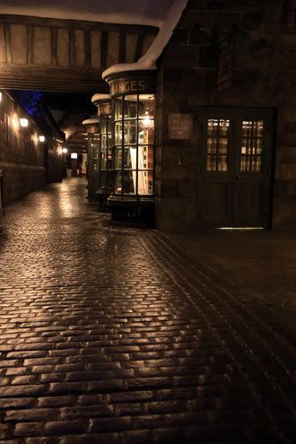 後ろにある建物は「ワイズエーカー魔法用品店」です。