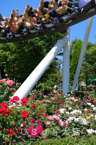 ハリウッドドリームザライドに乗ると、このバラを上から見ることができます。
