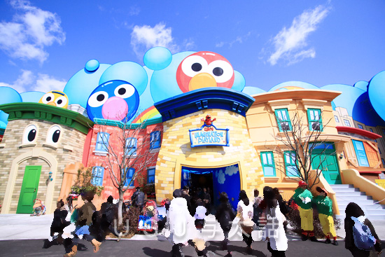 2015年8月1日開業予定の「ザ パーク フロント ホテル アット ユニバーサル・スタジオ・ジャパンのテナント」の工事が進み、テナントが立ち並ぶ通りが見えるようになったのです。