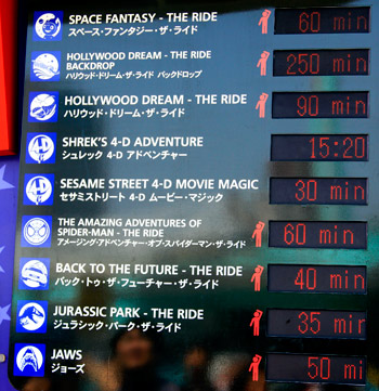 お盆の真っ最中なのでアトラクションに乗るのにどのくらいの時間がかかりますか?(←初めて行くのでわかりません。)