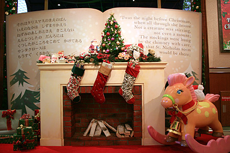 大きな絵本と大きな靴下、それに木馬と暖炉。