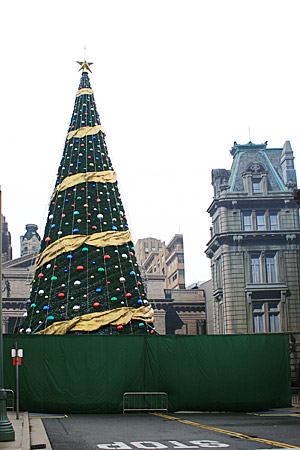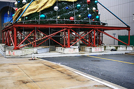 この日、ツリーの前を通ると、このように幕が張られていました↓
