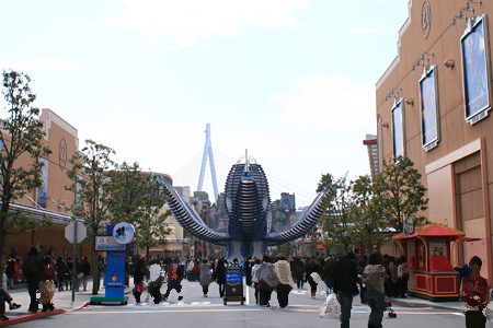 リハーサル中のフロートは置かれたままのようで、ゲートをくぐり、