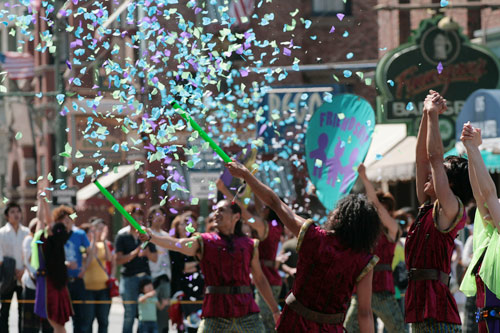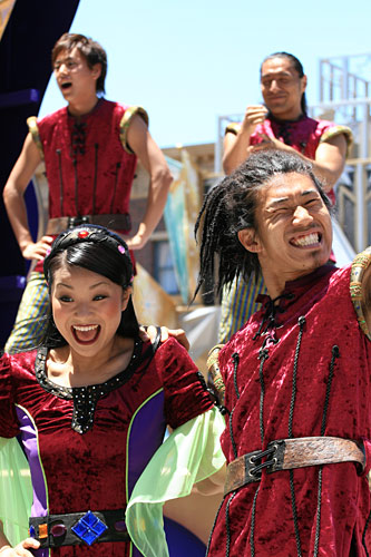 キャラクターやキャストが踊り笑顔をふりまいてくれて