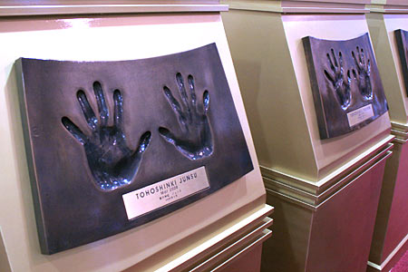 この東方神起のメンバーの手形が、パレスシアターに展示してあるんです。